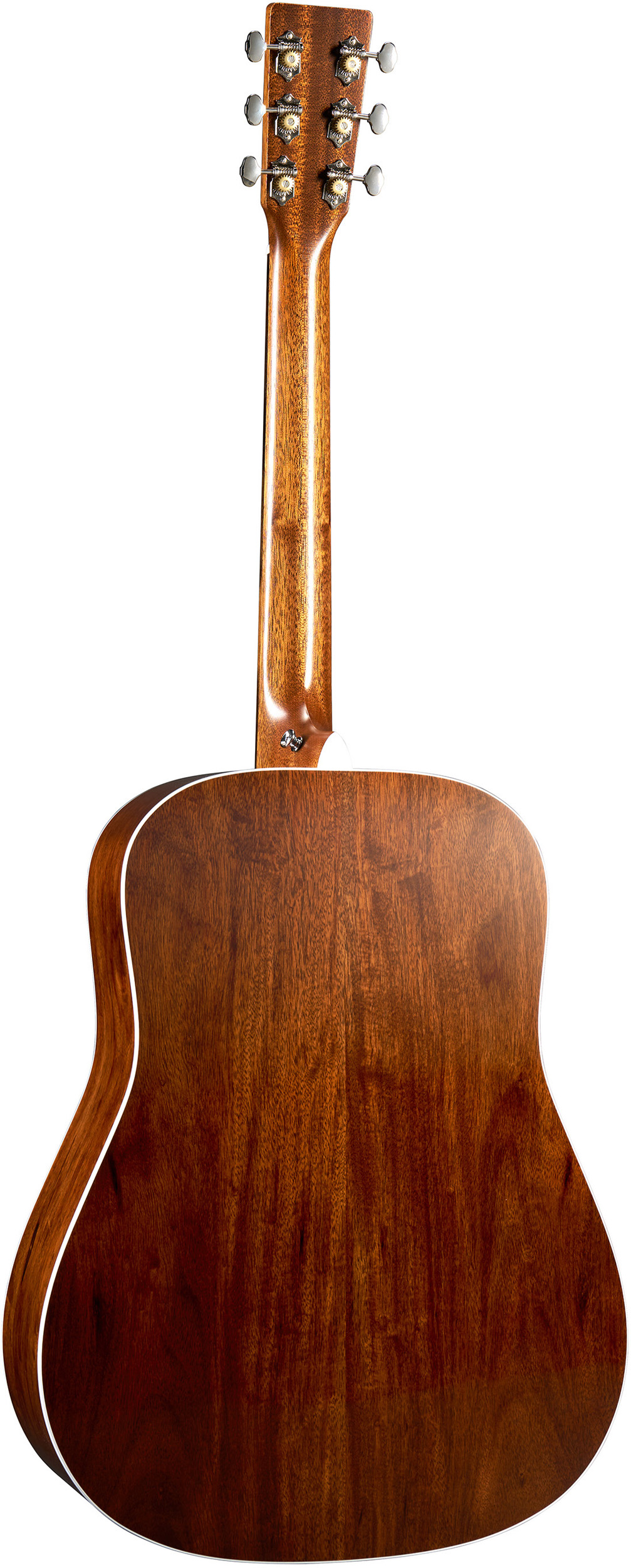 Poznaj swojego nowego, starego przyjaciela. Martin DE Retro Plus Granadillo został zainspirowany legendarnymi modelami Style 28 i łączy ponadczasowy design z nowoczesnym rzemiosłem. Lita płyta wierzchnia ze świerku poddanego procesowi termicznego postarzenia (torrefied) zapewnia otwarte, dojrzałe brzmienie z charakterem vintage już od pierwszych chwil gry. W połączeniu z litym tyłem i bokami z granadillo instrument oferuje mocny bas, klarowne wysokie tony oraz długi sustain — wszystko, czego oczekuje się od klasycznego dreadnoughta. Scallopowane ożebrowanie X zwiększa dynamikę i projekcję, a gryf Performing Artist oraz hebanowa podstrunnica zapewniają wysoki komfort i płynną grywalność. Wykończenie inspirowane Style 28 oraz elektronika LR Baggs Element czynią z tego modelu scenicznie gotowy instrument dla muzyków poszukujących brzmienia, komfortu i ekspresji — dokądkolwiek zaprowadzi ich muzyczna droga.