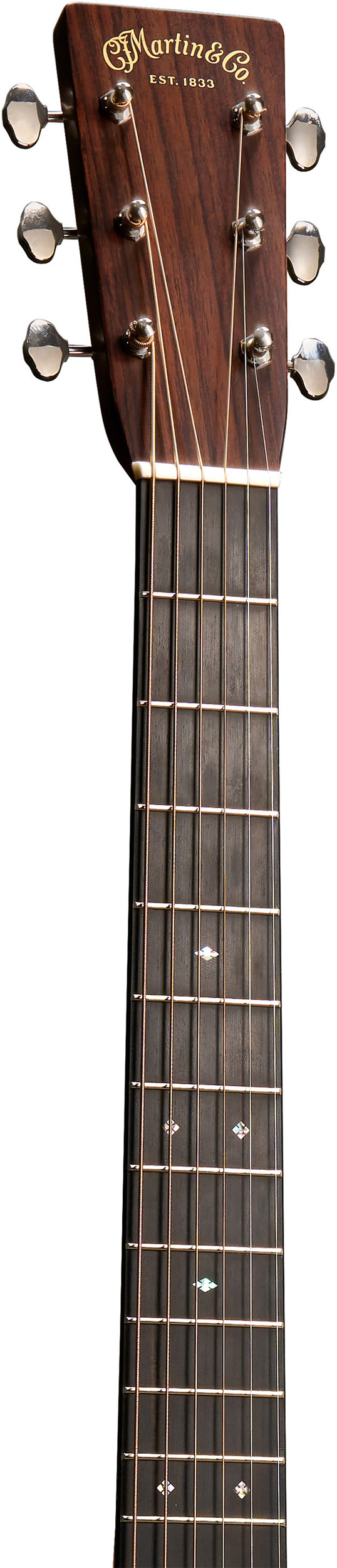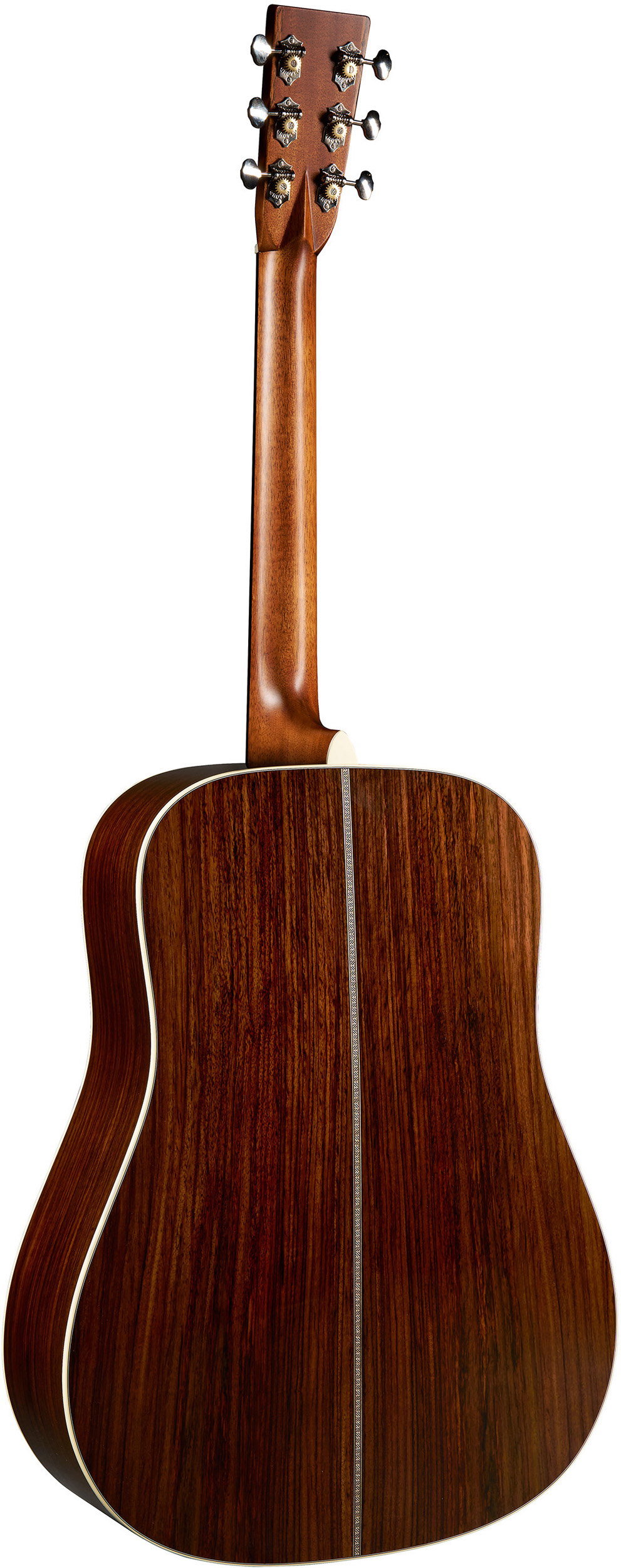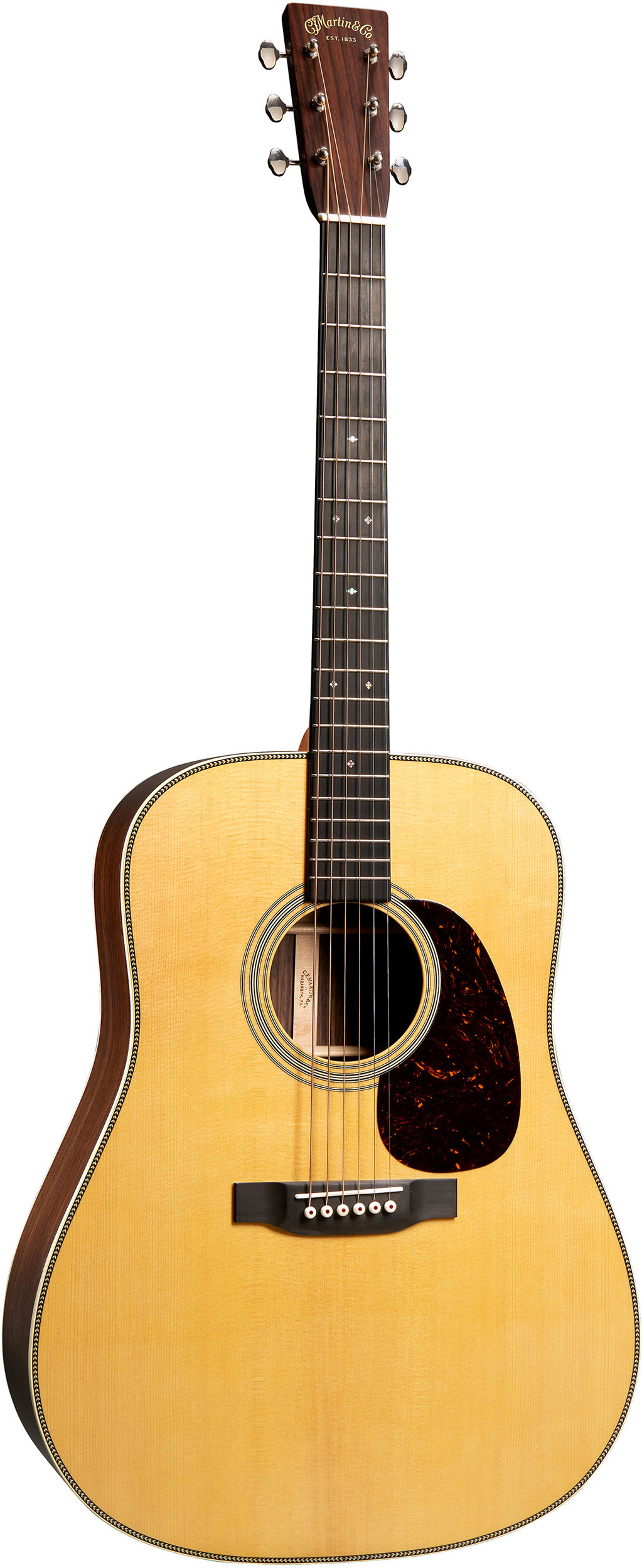 Martin Super HD-28 rozwija legendarny dreadnought Style 28 w konstrukcji o powiększonej objętości. Dzięki o 20% większej objętości powietrza wewnątrz korpusu w porównaniu do standardowego dreadnoughta, Super D oferuje potężny bas oraz niezrównaną projekcję. Lita płyta wierzchnia ze świerku w połączeniu z litym tyłem i bokami z palisandru indyjskiego zapewnia bogate alikwoty oraz złożone brzmienie, które z czasem będzie się jeszcze bardziej otwierać. Przesunięte do przodu scallopowane ożebrowanie Golden Era X, znane z serii Modern Deluxe, dostarcza brzmienia inspirowanego stylem vintage oraz długiego wybrzmiewania. Detale takie jak wyrazisty binding w jodełkę, antyczna biała lamówka oraz inkrustacje w układzie rombów i kwadratów podkreślają ponadczasowy styl Martina. Uzupełniony niklowaną mechaniką typu open gear oraz gryfem łączonym na jaskółczy ogon, Super HD-28 stanowi odważną ewolucję akustycznej ikony — stworzoną dla muzyków, którzy chcą być słyszani.
